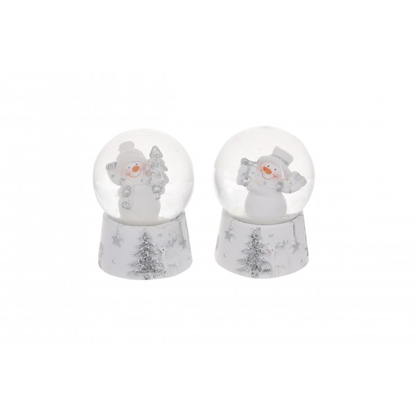 Сувенір водяна куля скло "Сніговик" 5,2см,білий з сріблом,2 вида №913-325/Bonadi/(6)