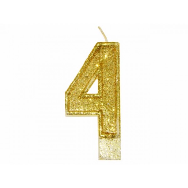 Свеча в торт Цифра-4 маленькая с присыпкой золото/серебро (10) (100)