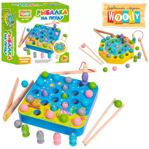 Іграшка дерев'яна Рибалка,магнітна вудка,рибки,пінцет,палички, в кор-ці №MD1893(24)
