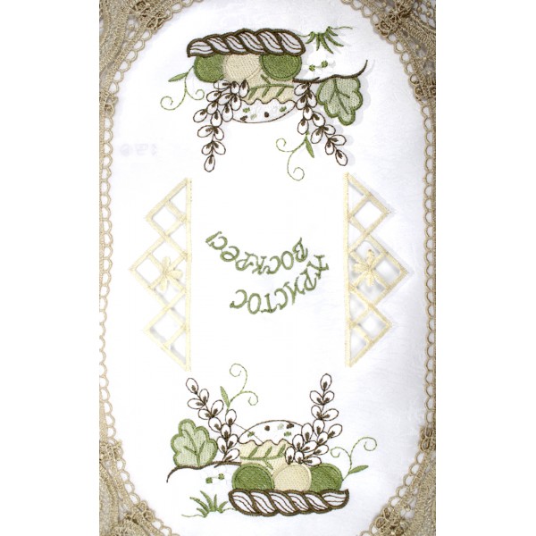 Великодня серветка "Христос Воскрес,крашанки з котиками" овал. 48х31см №80510-1(12)