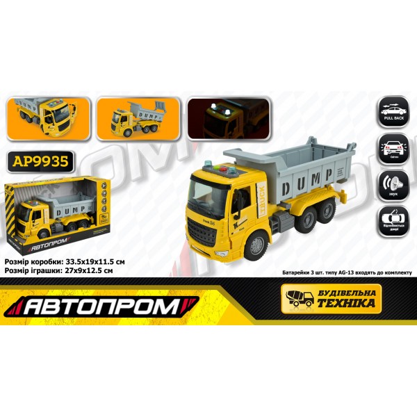 Машина "Автопром" Будтехніка світло,звук,в кор-ці,33,5х19х11,5см №AP9935(12)(24) КІ