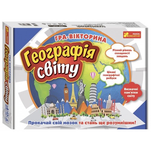 Тематические настольные игры для детей Игра-викторина География мира на украинском Ранок 12120138У/5816 Ранок