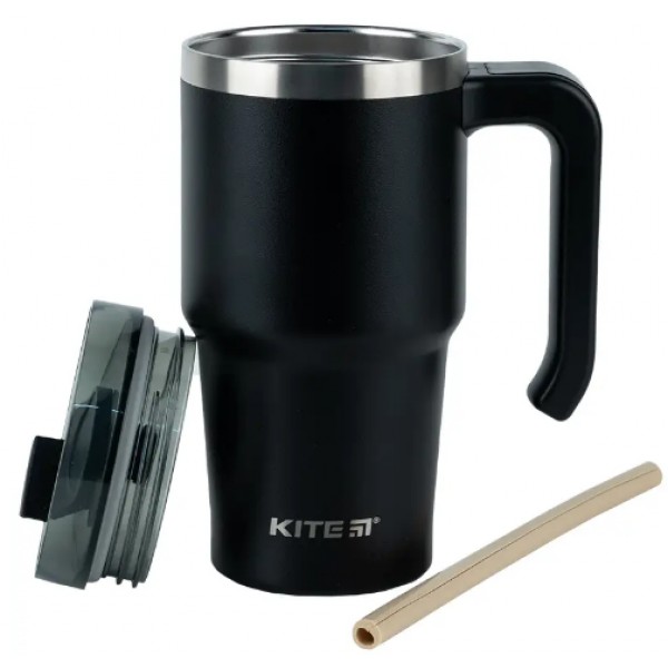 Термочашка з ручкою 0,6л "Kite" чорна №K24-1207-1