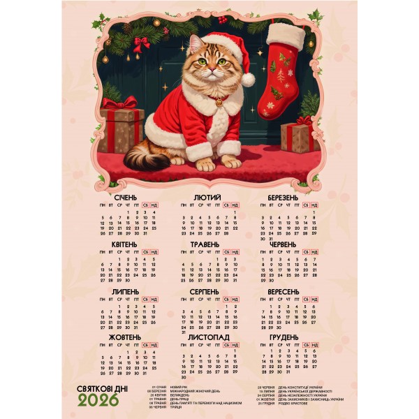 Календар А3 верт Кіт-Клаус 2026