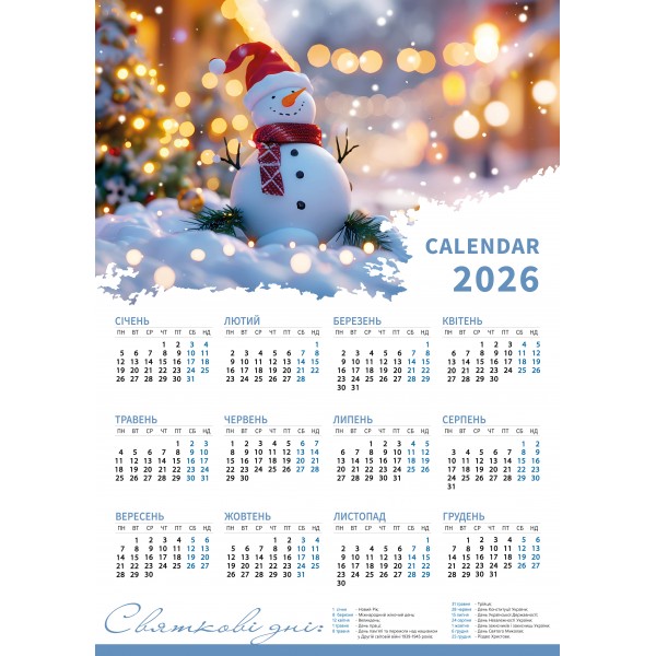 Календар А3 верт Сніговик 2026