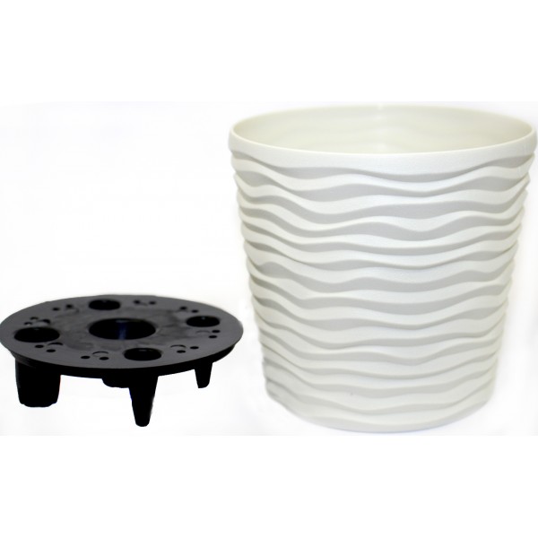 Горщик квітковий пластиковий "Ф'южн" 12х11см 0,6л біла троянда,низький,зі вставкою/Алеана/
