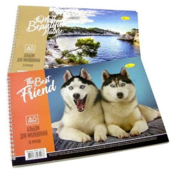 Альбом для малюв. на пруж. 30/120 А4 лак. №АП-0309/Апельсин/
