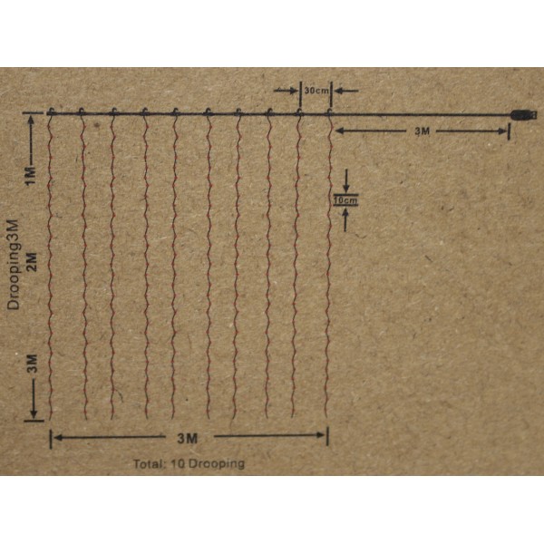 Гірлянда-штора електрич.Роса200LED USB адапт.,пультДК,10лін.білий теплийL-3м H-2м№1938-07u