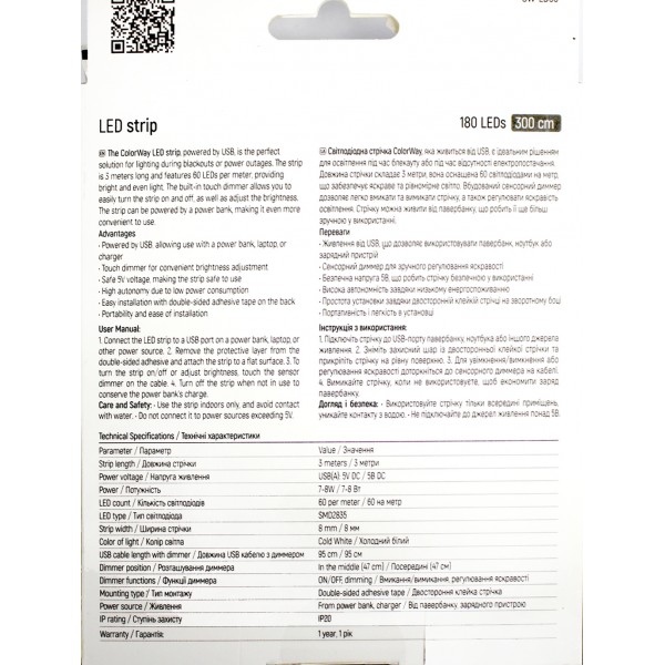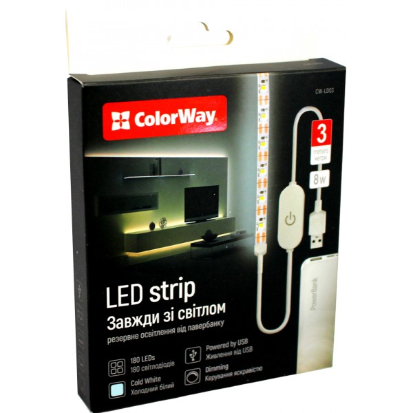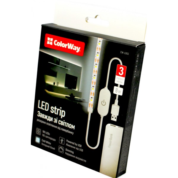 LED стрічка ColorWay USB холодний білий L-3м №CW-LD03