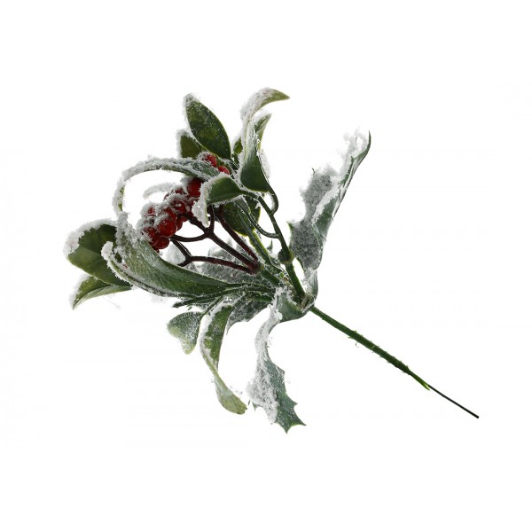 Гілка декор. 20см засніжена з листям та червоними ягодами №839-555/Bonadi/