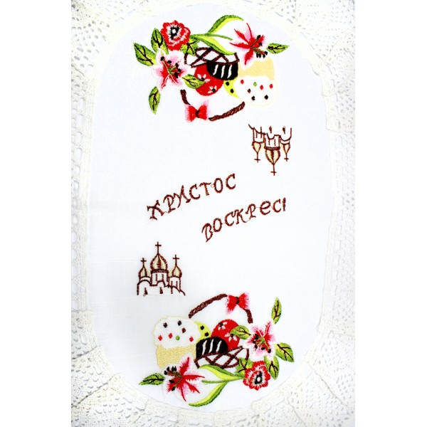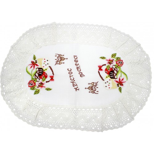 Великодня серветка "Христо Воскрес,паска з церквою" овальн. 62х44см №019