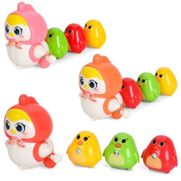 Іграшка заводна курка 8см,їздить,курчата 3шт 4см, магнітні кріплення,в уїкульку №1107(75)