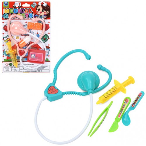 Набір лікаря: стетоскоп, мед. інстр.,2 види,на листі,19х29х4см №577-153(108)
