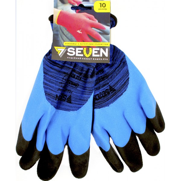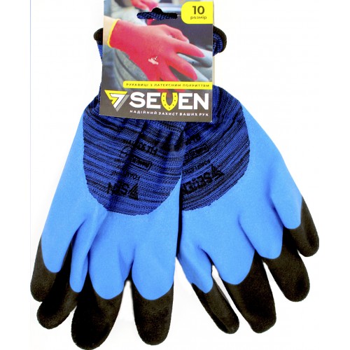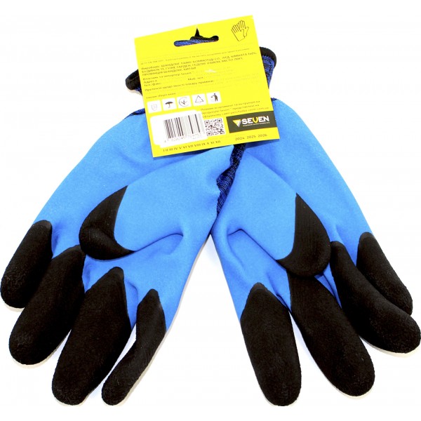 Рукавиці утеплені "Seven" сині з подвійним спіненим синьо-чорним покриттям №FLL9320