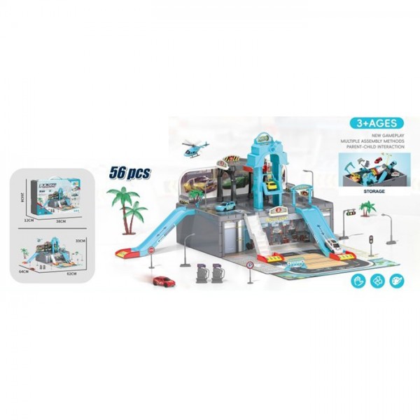 Гараж,ліфт(механічний),машинка 7см 4шт,вертоліт,дорожні знаки,56дет. №A245(9)