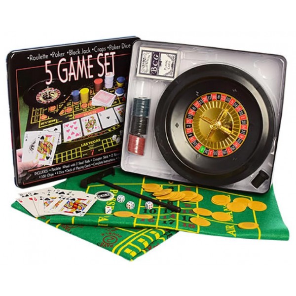 Гра наст. Покер 5в1,рулетка,фішки,карти,кубики,сукно 2шт,в кор-ці (метал) D25354(8)
