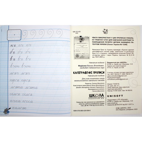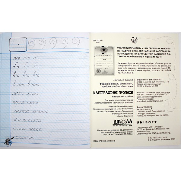 Навчальна література Каліграфічний зошит-шаблон. З навчання правильного письма. Синя графічна сітка В. Федієнко Школа 5588 Школа