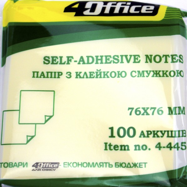 Блок/зам. липк. краєм 76х76мм 100арк.,асорті 4Office 4-445/5415 4Office