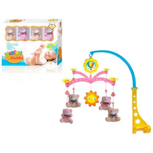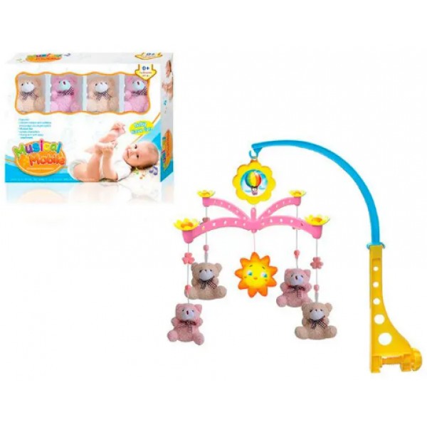 Карусель на ліжечко заводна,підвіски 5шт (4шт-м'які, ведмедик),муз.,в кор-ці №XQT712(18)