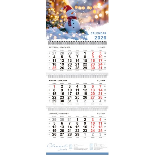 Календар кварт. настін. Сніговик 2026 ,3 пружини
