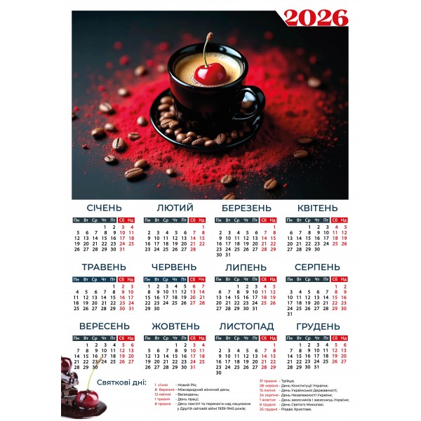 Календар А3 верт "Кава з вишнею" 2026