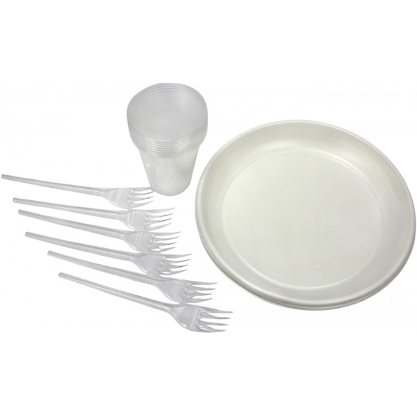 Набір пласт. одноразового посуду на 6 персон (тарілка+виделка+стакан)