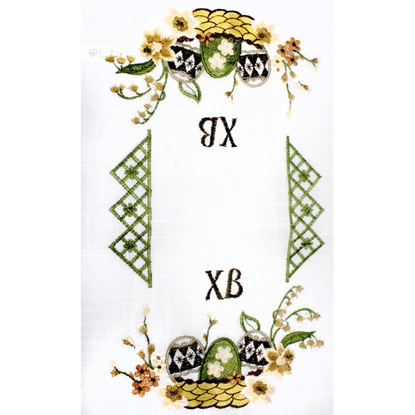 Великодня серветка "Христос Воскрес,крашанки в кошику" прямок. 62х44см №60264