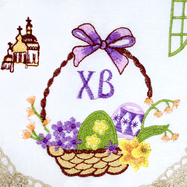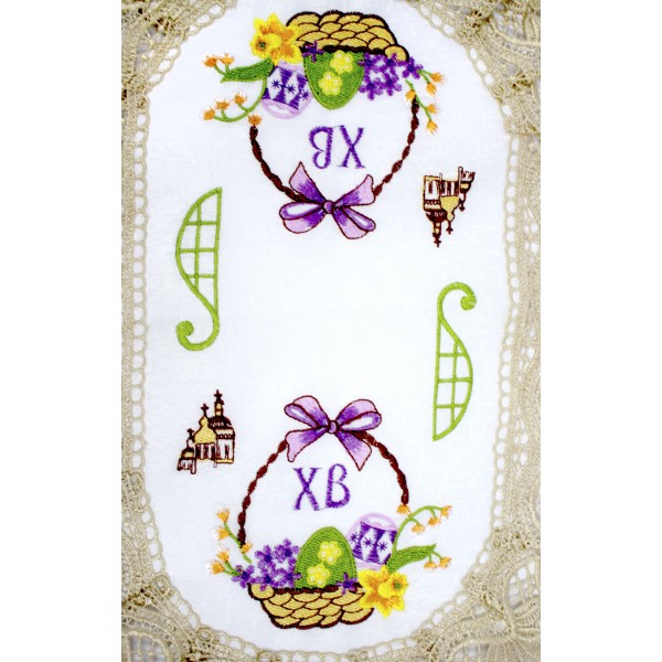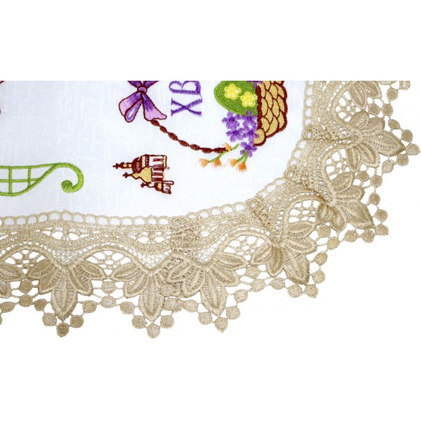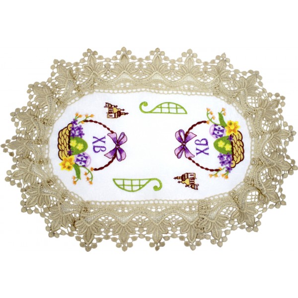 Великодня серветка "Крашанки в кошику" овал. 48х31см кремовий обідок №0008